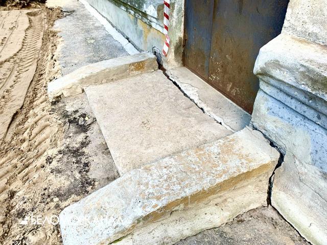 В Северодвинске у жилого дома на улице Первомайской отошло крыльцо из-за ремонта трубопровода