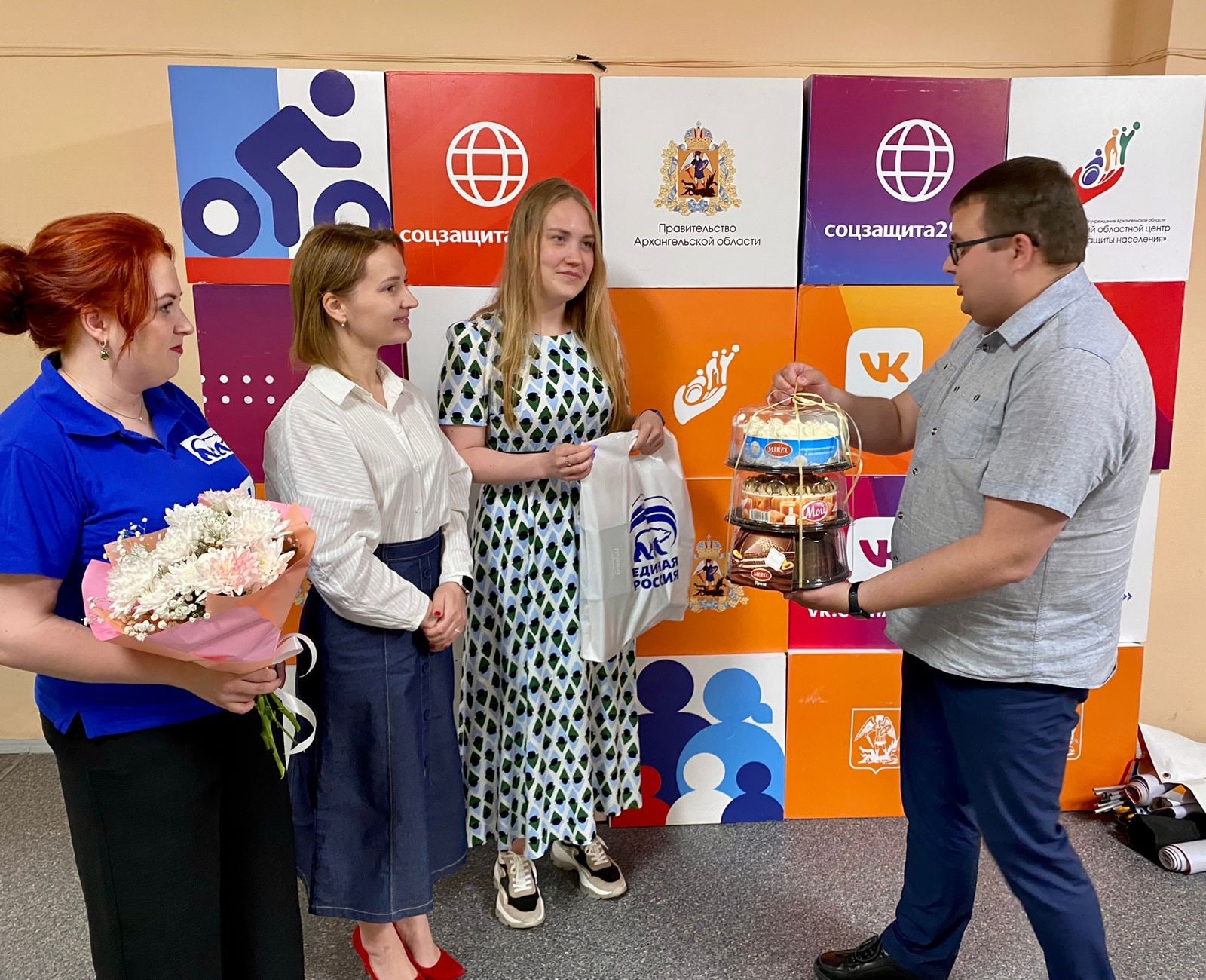 В профессиональный праздник молодогвардейцы от лица депутата Государственной Думы Александра Спиридонова поздравили коллектив Архангельского областного центра социальной защиты населения.