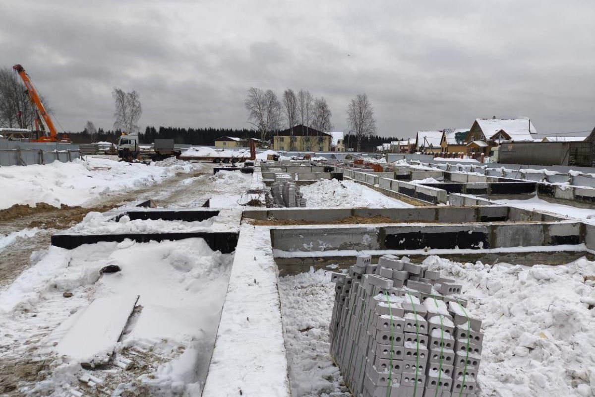 В настоящее время на стройплощадке осуществляется устройство ростверка подвала и монтаж фундаментных блоков по периметру дома.