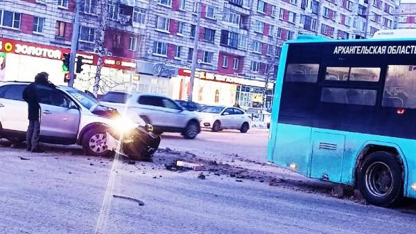 Автобус от «Рико» жестко столкнулся с легковушкой в центре Архангельска