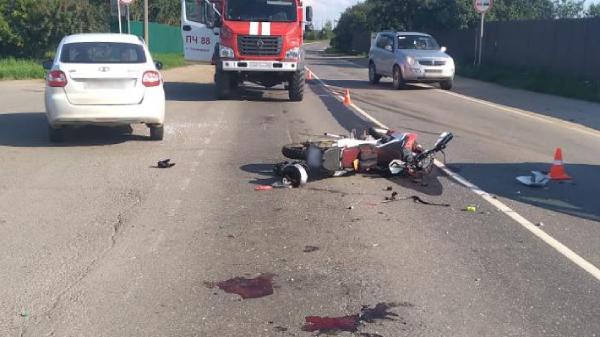 ДТП произошло 4 августа в 15:45 в Котласе на 427-ом километре автодороги. По предварительным данным, водитель 1960 года рождения за рулем отечественной легковушки, двигаясь в сторону поселка Приводино, при повороте налево не убедился в безопасности маневра и не уступил дорогу мотоциклу «Хонда». В результате произошло столкновение.