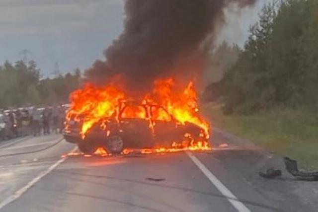 На трассе Северодвинск-Архангельск в жуткой аварии столкнулись три автомобиля. Одна машина сгорела