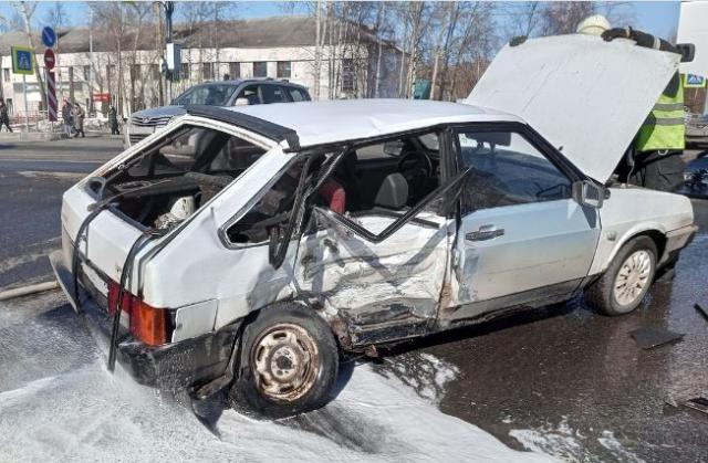 Сегодня днем, на пересечении проспекта Ленинградского и улицы Коммунальной произошло ДТП с участием двух автомобилей: ВАЗ-2109 и Land Rover Discovery.