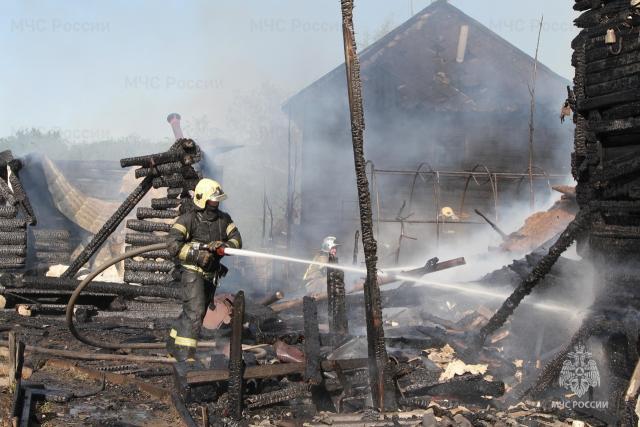 Сообщается, что в процессе пожара произошел взрыв газового баллона. Создалась угроза перехода огня на соседние жилые дома. Был объявлен повышенный номер пожара.