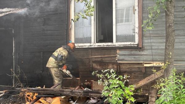 Сегодня днем спасатели тушили огонь в двухэтажном деревянном доме по адресу Павла Усова, 13.