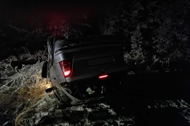 В Архангельской области легковушка съехала в кювет и перевернулась, водитель получил травмы