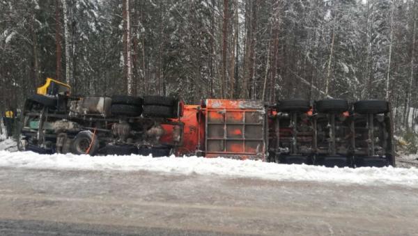 На автодороге «Лодейное поле — Вытегра — Прокшино — Плесецк — Брин-Наволок» опрокинулся грузовик, который вез топливо.