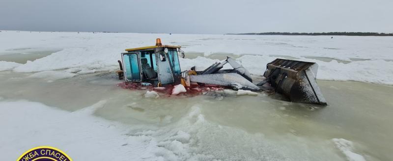 Как сообщили в Аварийно-спасательной службе города, трактор провалился под лед в 200 метрах от берега. Полностью транспортное средство не затонуло - помешал грунт.