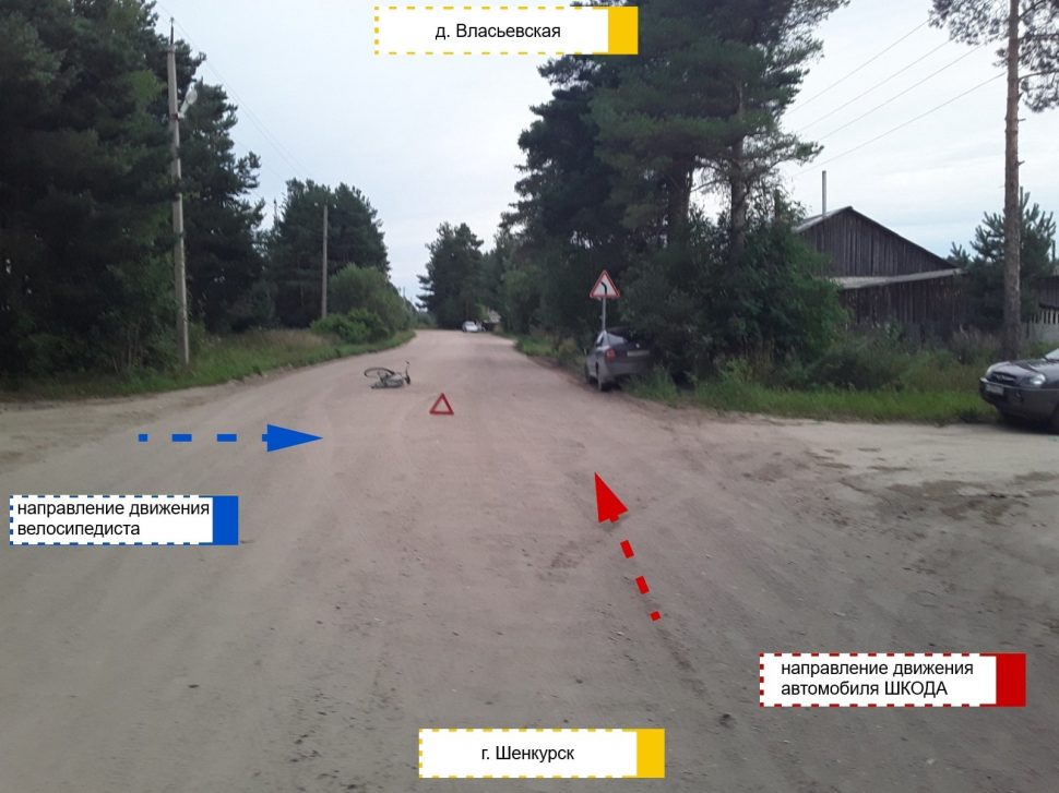 А вот велосипедист с телесными повреждениями оказался в Шенкурской ЦРБ.