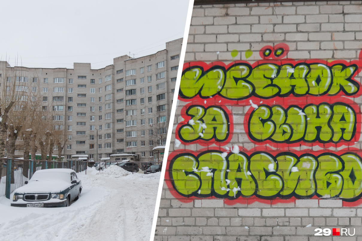 Продолжаем наш фотопроект «Архангельск с изнанки». Ранее мы показывали, как выглядит двор за городской администрацией , дворы недалеко от Кузнечевского моста , у Первой городской поликлиники и у швейной фабрики. В этот раз фотограф 29.RU Иван Митюшёв прогулялся за магазином «Диета». Посмотрите, как обустроен этот двор с заснеженными машинами, трогательными граффити и мебелью, стоящей на улице.