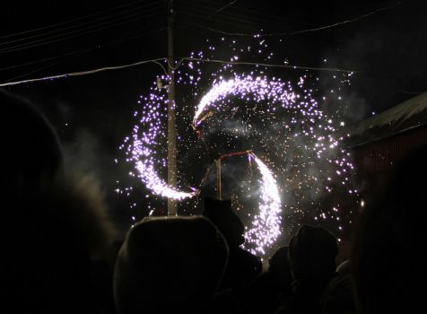 - держать работающее пиротехническое изделие в руках (кроме бенгальских огней, тортовых свечей, хлопушек);