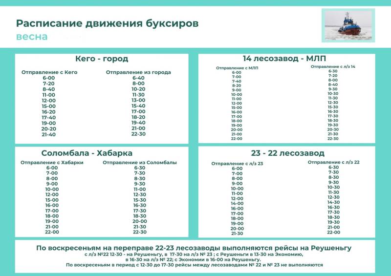 Начиная с 23 апреля, по воскресеньям, буксир будет заходить на Реушеньгу. А пока ледовая переправа Экономия – Реушеньга открыта для пешеходов.