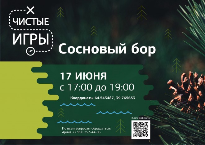 Приглашаются команды из 2 - 5 человек. Регистрация проходит по ссылке: https://cleangames.org/game/pinery29 . Игра пройдёт 17 июня с 17:00 до 19:00. Местом проведения акции станет сосновый бор на острове Ягры.