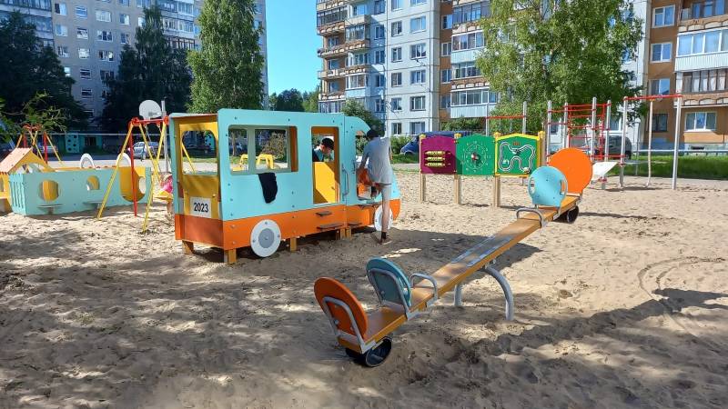 В летний период игровые зоны дополнят яркими и современными качелями, каруселями и спорткомплексами.