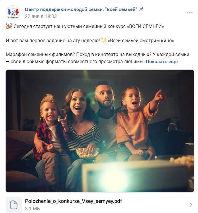 Знакомьтесь с положением, регистрируйтесь и участвуйте всей семьей! Подробная информация – в группе Центр поддержки молодой семьи. "Всей семьей" .