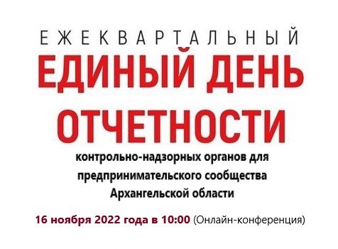 16 ноября в 10:00 для предпринимательского сообщества Архангельской области в XVIII раз пройдет ежеквартальный «Единый день отчётности» контрольно-надзорных органов.