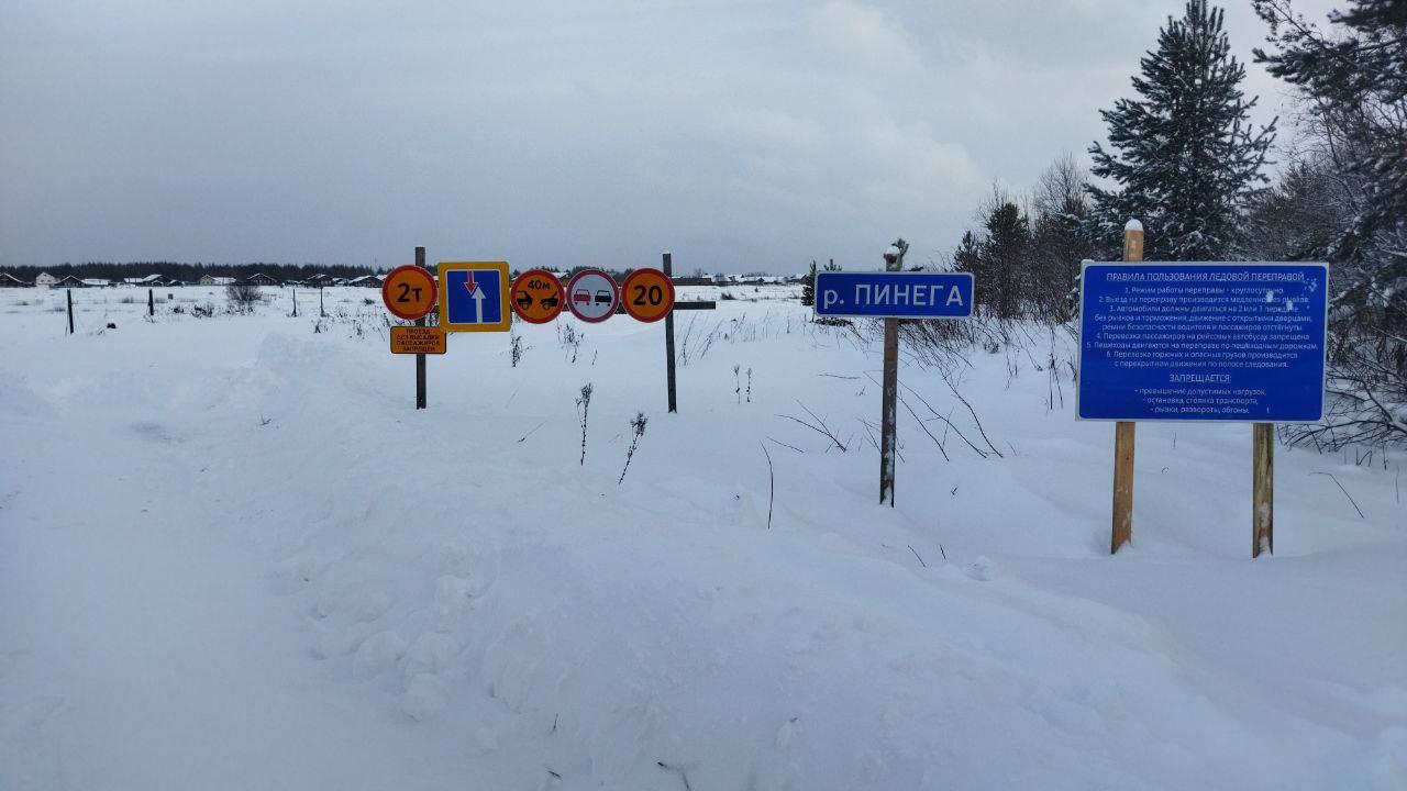 Еще одна областная переправа появилась на Пинежье. В районе деревни Остров открыта ледовая дорога к селу Сура.