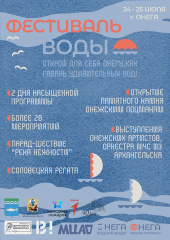Дорогие Онежане и гости города! Приглашаем Вас на ФЕСТИВАЛЬ ВОДЫ, который состоится 24 - 24 июля 2024 года.