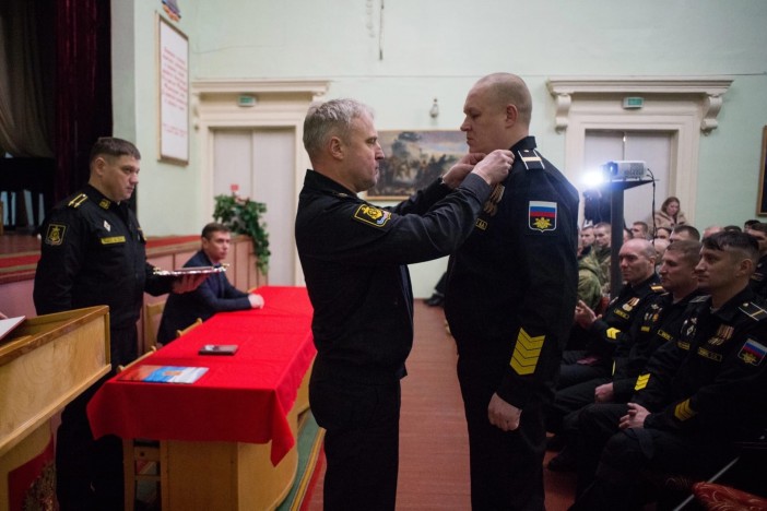 Командир Беломорской военно-морской базы контр-адмирал Олег Зверев вручил двум бойцам, вернувшимся с зоны проведения специальной военной операции награды. Орден Мужества получил главный старшина Александр Андренко из посёлка Катунино. Он был ранен, но выполнил боевое задание. Медаль «За отвагу» вручили Сергею Брагину из Вельска.