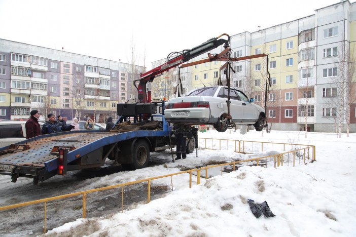 Сегодня из двора дома № 50 на проспекте Победы увезли на спецстоянку машину отечественного производства, имеющую все признаки брошенной.