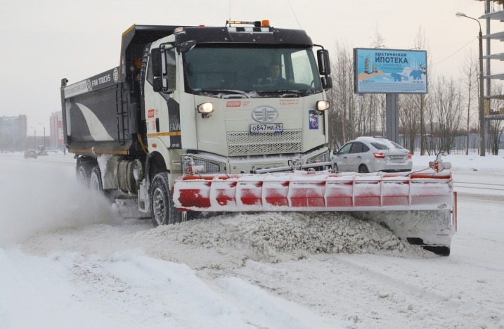 По информации комитета ЖКХ, транспорта и связи администрации Северодвинска, сегодня Мезенское дорожное управление вывело на городские магистрали и территории общего пользования 26 единиц техники, на ручной уборке занято 29 человек.