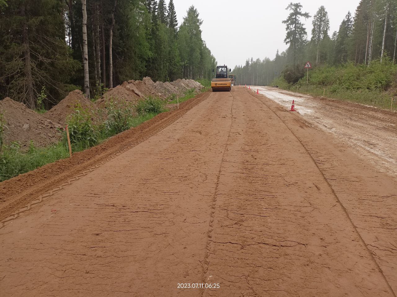 В рамках национального проекта «Безопасные качественные дороги» продолжаются работы по ремонту автомобильной дороги Архангельск — Белогорский — Пинега — Кимжа — Мезень на участках км 200+082 – км 204+364,