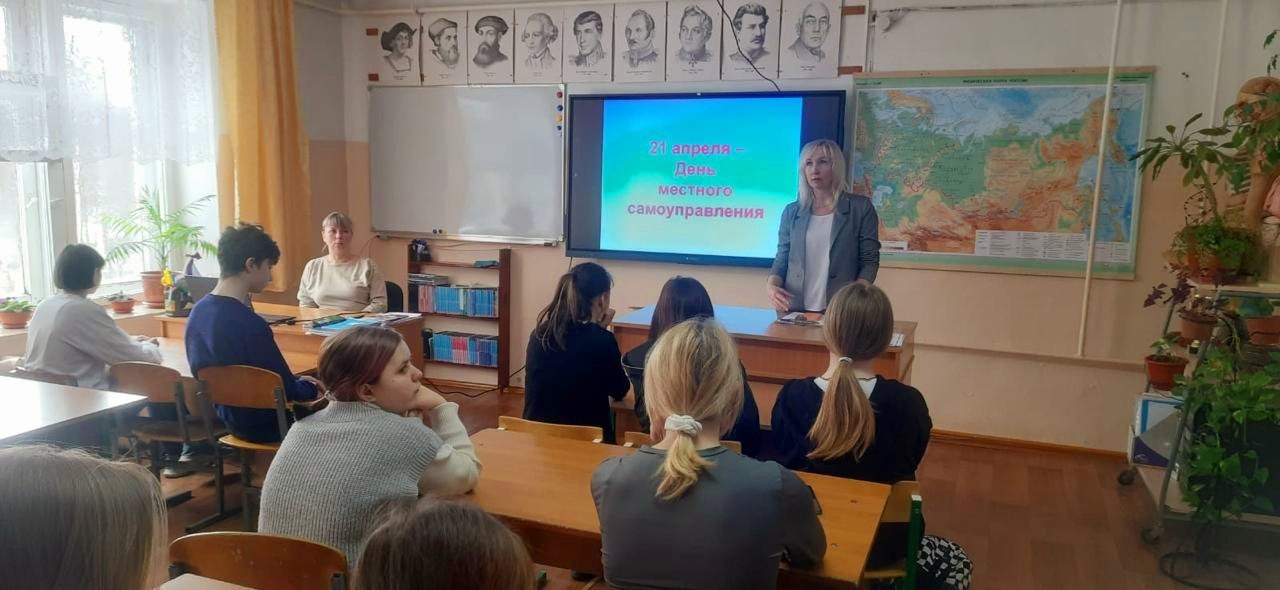 Виктория Александровна рассказала ребятам о таких профессиях, как руководитель муниципального образования и муниципальный служащий. О том, что муниципальный служащий выступает в роли посредника между населением и властью. Во время встречи ученики смогли задать интересующие их вопросы.