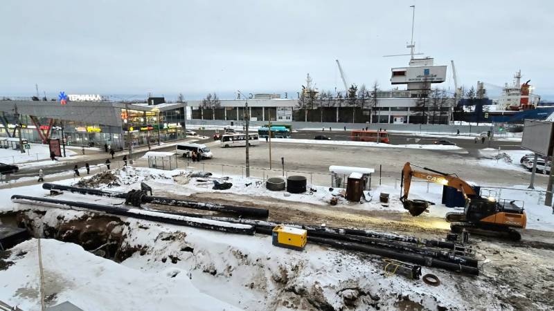 РВК-Архангельск начал прокладку нового участка водопроводной трубы диаметром 400 мм под площадью Профсоюзов.
