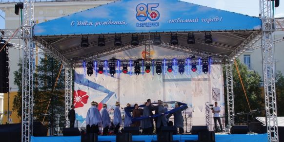 На площади Победы состоялась праздничная программа «Славим город Северодвинск»: премьера музыкально-пластического спектакля «Путешествие сквозь время», концерт северодвинских коллективов, духового оркестра Военной академии имени С.К. Тимошенко, солистов Государственного театра оперы и балета Республики Коми. Горожан поздравили Председатель Совета депутатов Северодвинска Михаил Старожилов, Глава Северодвинска Игорь Арсентьев , генеральный директор АО «СПО «Арктика» Олег Логинов.