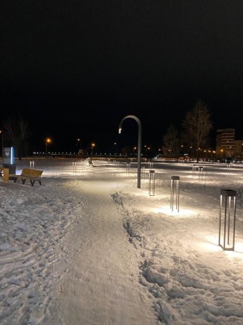 Сегодня наружное освещение работать не будет: идут монтажные работы. Уже установлено пять высоких светильников из 23. В штатном режиме сквер будет освещаться с завтрашнего дня.