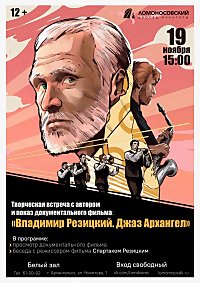 - 17:00 – показ документального фильма «Владимир Резицкий: Джаз архангел», малый зал, вход свободный, регистрация.