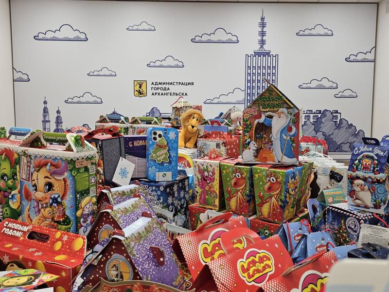 Сотрудники администрации города, муниципальных учреждений и предприятий, депутаты Гордумы в течение месяца приносили сладкие наборы и игрушки для детей из малообеспеченных и приемных семей, ребят с ограниченными возможностями здоровья и многодетных семей, а также детей из семей мобилизованных архангелогородцев.