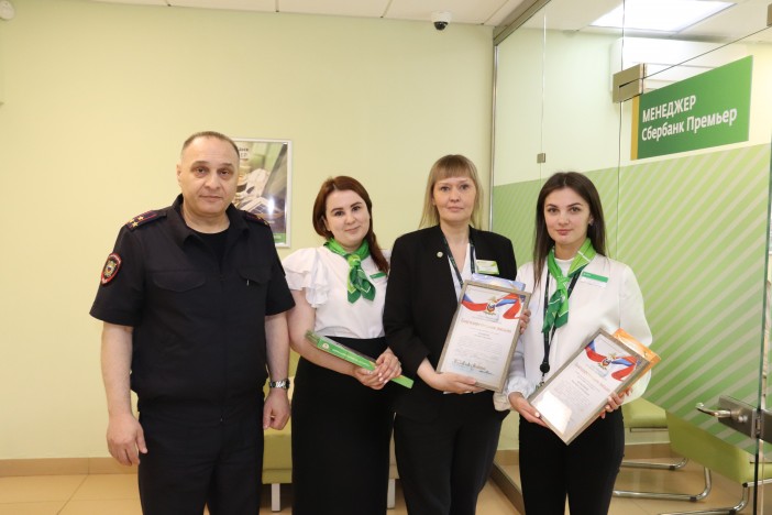 Начальник отдела МВД России по городу Северодвинску Леонид Кульбида вручил благодарственные письма сотрудницам Сбербанка России Виктории Ботыгиной и Ольге Шишковой. Они помогли предотвратить преступление.