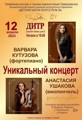 Перед северодвинцами выступят москвички Варвара Кутузова (фортепиано) и Анастасия Ушакова (виолончель). Девушки - талантливые молодые музыканты - являются лауреатами международных конкурсов и выступают в роли солистов с ведущими оркестрами мира.