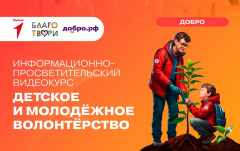 Видеокурс «Детское и молодёжное волонтёрство» от Движения Первых и Ассоциации Добро.рф расскажет о сути добровольчества, о том, как собирать волонтёрский отряд, о мотивации участников и главное — как реализовывать социальные проекты.