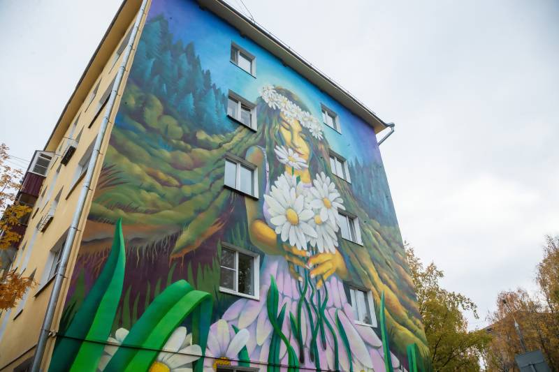 Сегодня состоялось открытие нового мурала на торце дома 157 по пр. Троицкому. «Девушка с ромашками» – проект ТОСа «Предмостный», который получил финансирование администрации Архангельска после победы в конкурсе.