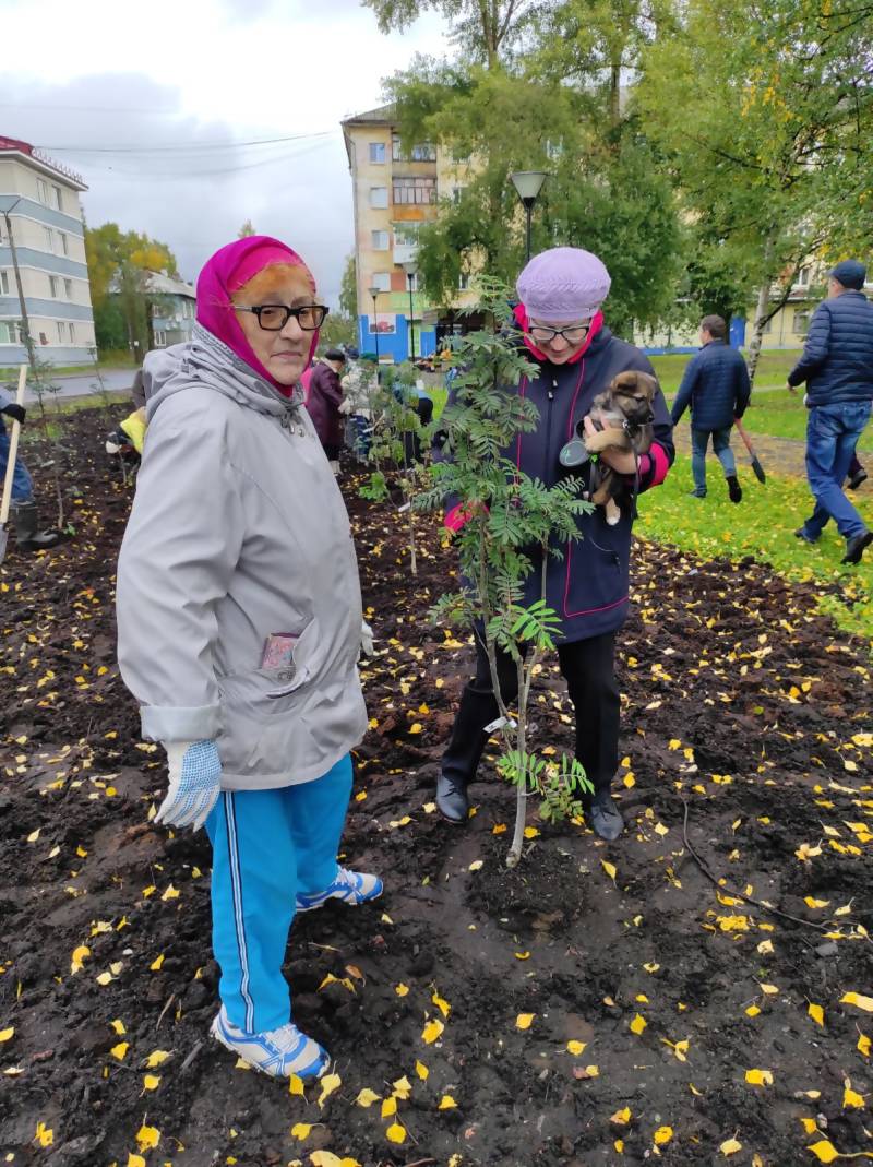 Было высажено 45 рябин, а ранее в парке высадили 10 дубов, 10 кленов, 3 липы, кусты пузыреплодника.