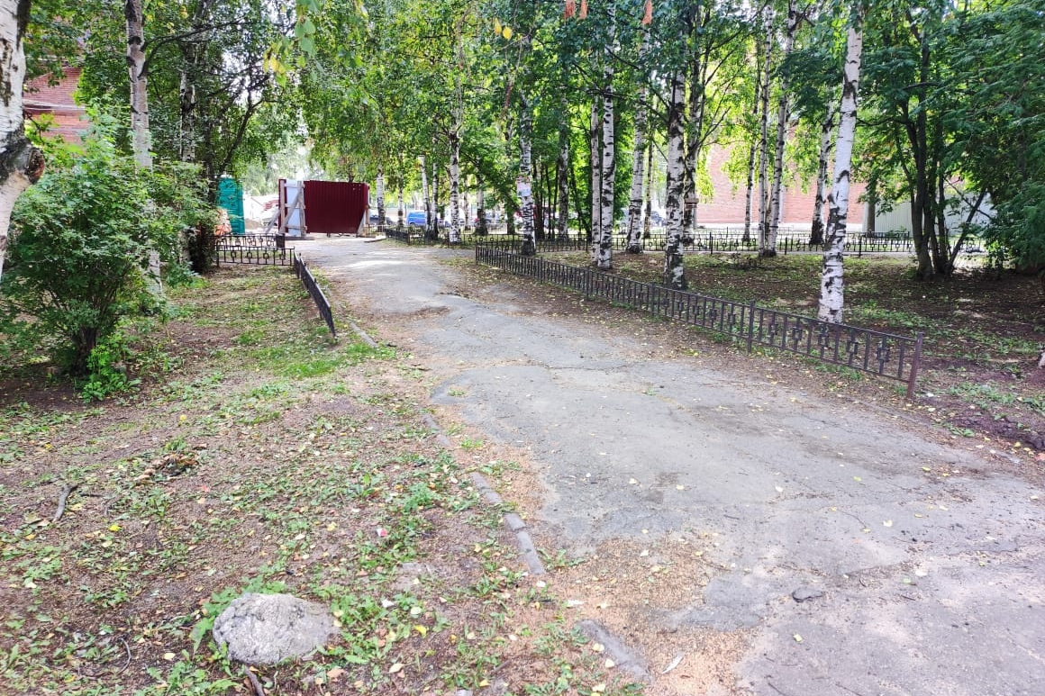 Сейчас территория не благоустроена. Из земли торчит арматура — в августе 2022 года архангелогородка споткнулась об нее и сломала руку .