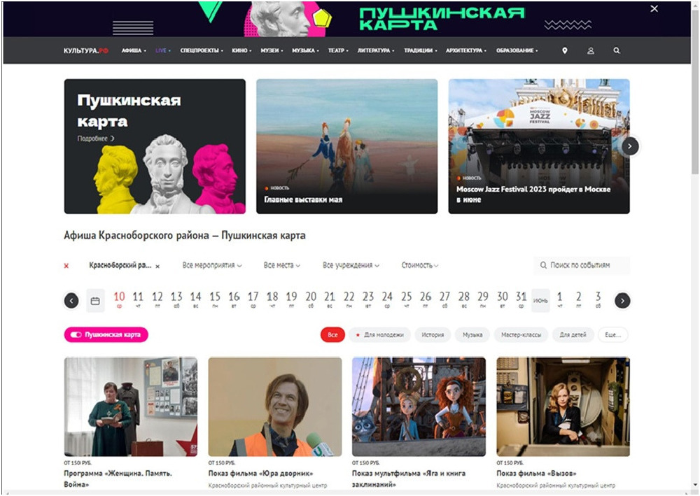 Молодые люди в возрасте от 14 до 22 лет включительно большинство фильмов могут посетить по «Пушкинской карте».