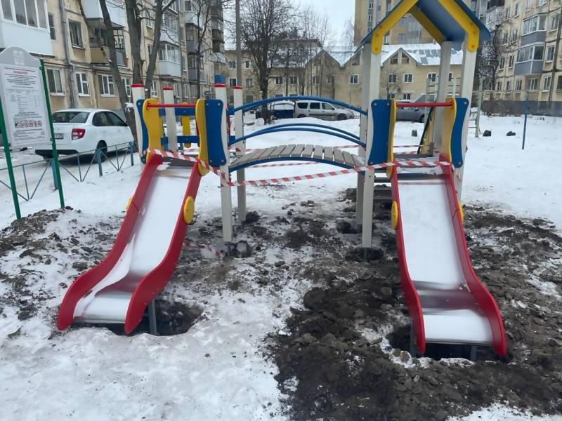 · Большое обновление во дворе на ул. Шабалина, 22, 24, 26, 26, корп.1, 2. Здесь устанавливают игровой комплекс, песочницу, карусель и две качалки.