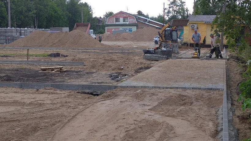 На объекте «Ярмарочная площадь» подрядчик сейчас завершает укладку брусчатки. Следующий этап благоустройства городской площади предполагает возведение стационарных торговых павильонов, детских игровых конструкций, малых архитектурных форм.