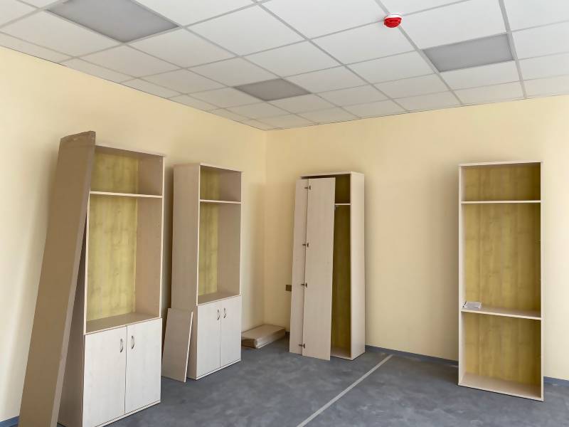 Рабочие завершают установку сантехники, в школу уже идёт установка новой мебели, школьных досок и мультимедийной техники.