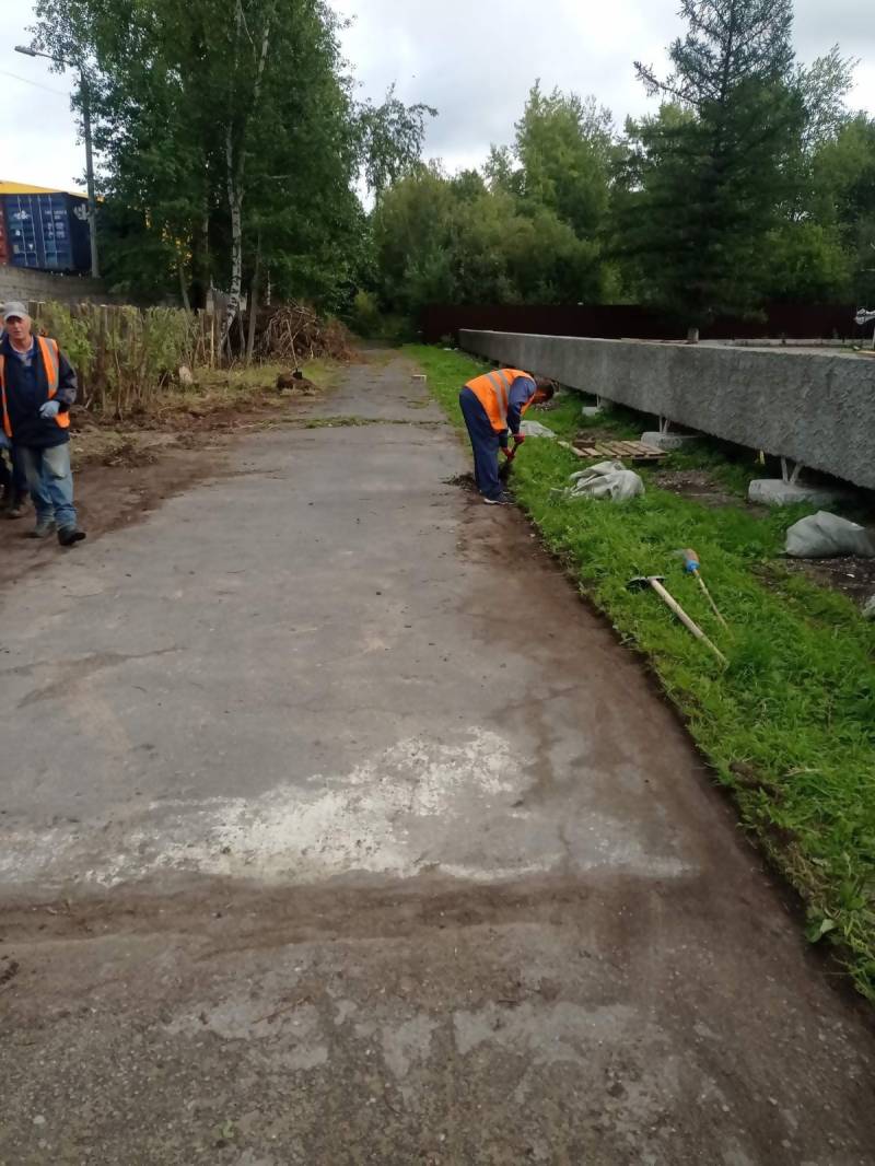 Также рабочие по благоустройству округа очистили от дерна и тем самым расширили пешеходную дорожку вдоль воинского захоронения на Ильинском кладбище.