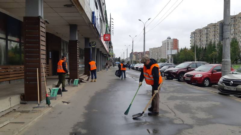 В округе Варавино-Фактория работают два дворника, которые были направлены подметать тротуары по Ленинградскому проспекту и на ул. Жосу.
