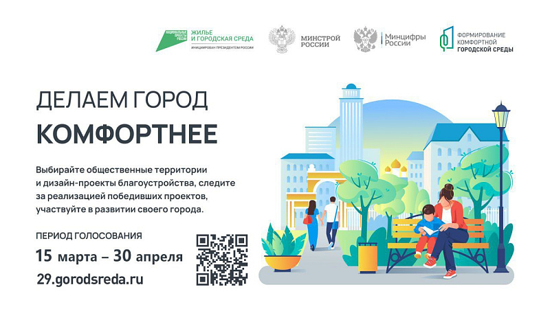 Напомним, что проголосовать за объекты благоустройства можно до 30 апреля включительно на сайте 29.gorodsreda.ru, на портале «Госуслуги» или при помощи волонтеров.