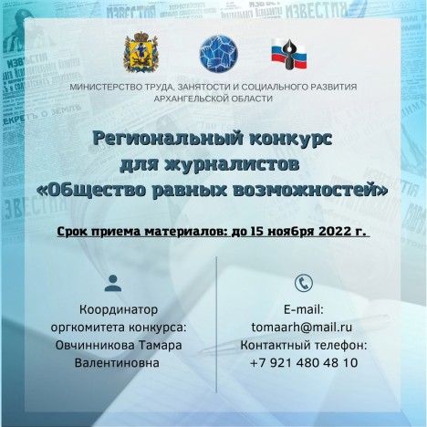 Региональное министерство труда, занятости и социального развития при поддержке областных общественных объединений инвалидов, архангельского отделения Союза журналистов проводит ежегодный региональный конкурс на тему: «Общество равных возможностей».