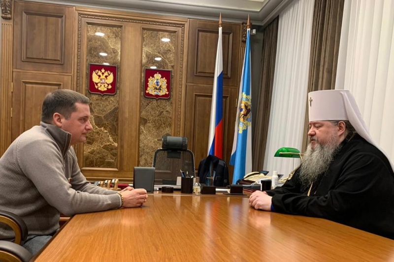 В региональном правительстве состоялась встреча губернатора Архангельской области Александра Цыбульского и главы Архангельской митрополии митрополита Архангельского и Холмогорского Корнилия.
