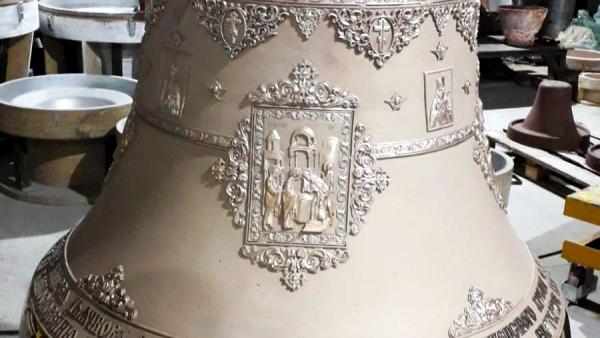 Колокол украшен иконами Пресвятой Троицы, Спаса Нерукотворного, святителя Николая Чудотворца и Владимирской иконой Божией Матери.