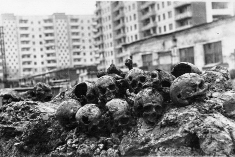 На фото — раскопки 1989 года в центре Архангельска (ул. Гайдара). Останки жертв большевистского террора. Автор снимка Алексей Сухановский.