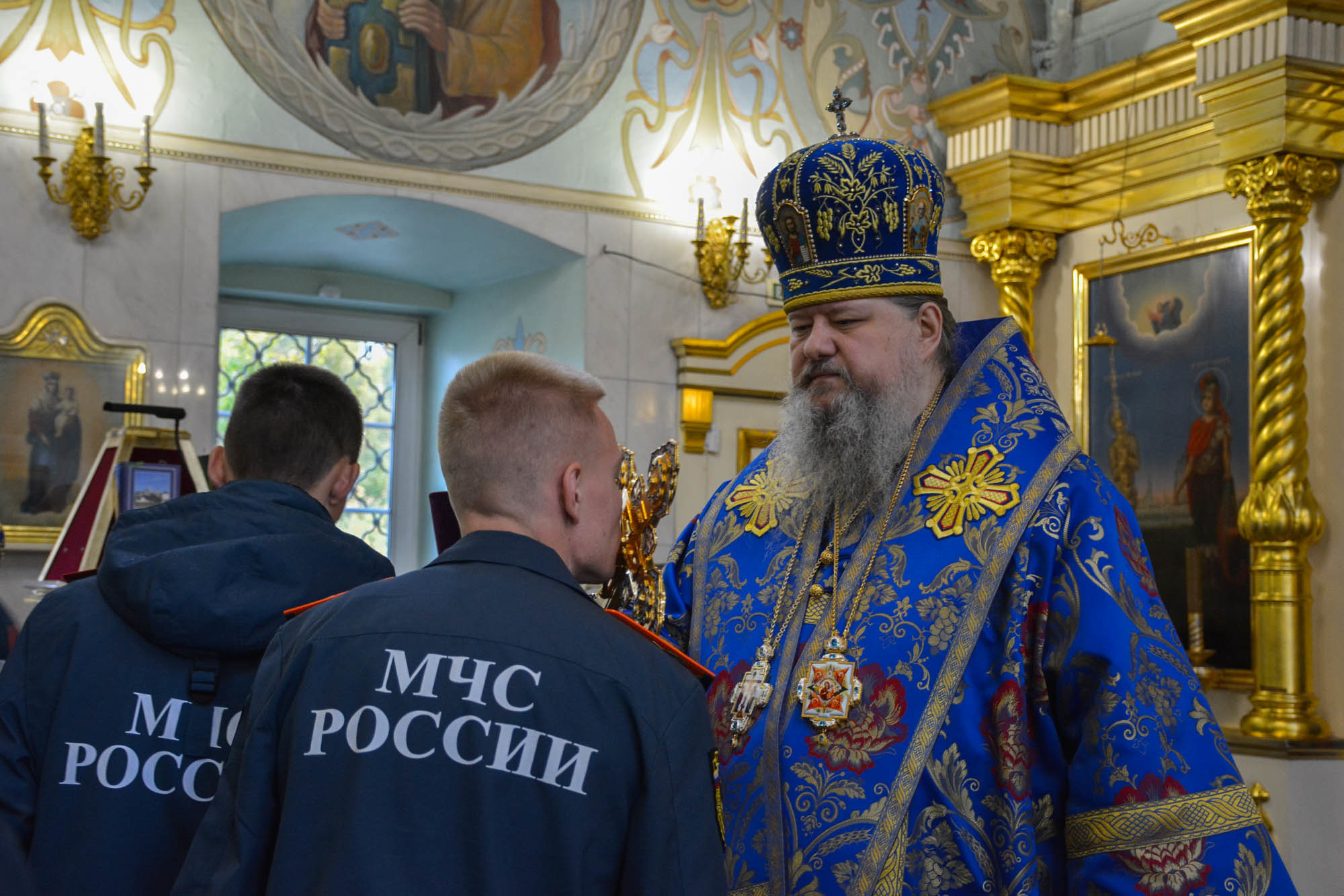 Сегодня в Ильинском кафедральном соборе г. Архангельска в праздник иконы Божией Матери «Неопалимая купина» состоялось богослужение, в котором приняли участие начальник Главного управления МЧС России по Архангельской области Шахобиддин Ваккосов, заместитель начальника по государственной противопожарной службе Павел Захаров и личный состав пожарно-спасательных частей города.